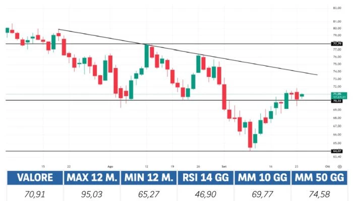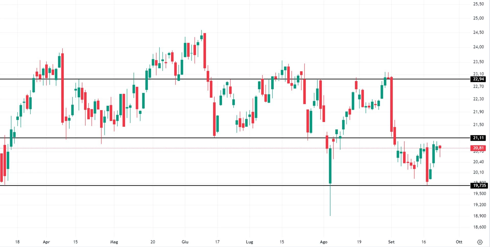 Prima di adottare una decisione di investimento al fine di comprendere appieno i potenziali rischi e benefici connessi alla decisione di investire negli strumenti finanziari quivi menzionati, si invita a leggere attentamente la relativa documentazione di offerta e/o quotazione e, in particolare, le sezioni dedicate ai fattori di rischio connessi all’investimento, ai relativi costi e al trattamento fiscale, e il relativo documento contenente le informazioni chiave (KID), ove disponibile. Tale documentazione è disponibile sul sito web investimenti.bnpparibas.it. L’investimento negli strumenti finanziari quivi menzionati può comportare il rischio di perdita totale o parziale del capitale inizialmente investito. Ove tali strumenti finanziari siano venduti prima della scadenza, l’investitore potrà incorrere anche in perdite in conto capitale. Nel caso in cui tali strumenti finanziari siano acquistati o venduti nel corso della loro durata, il rendimento potrà variare. La presente pubblicazione costituisce materiale pubblicitario e le informazioni in essa contenute hanno scopo meramente informativo e promozionale e non sono da intendersi in alcun modo come ricerca, sollecitazione o raccomandazione all’investimento, offerta al pubblico o consulenza in materia di investimenti. Le informazioni e i grafici a contenuto finanziario quivi riportati sono meramente indicativi e hanno scopo esclusivamente esemplificativo e non esaustivo. I rendimenti passati non sono indicativi, né sono garanzia, dei rendimenti futuri. È responsabilità dell’investitore effettuare un’accurata analisi di tutti i profili fiscali, legali e regolamentari (inclusi i fattori di rischio, tra i quali, i fattori di rischio legati ai tassi di interesse, i fattori di rischio di default e i fattori di rischio legati all’assenza di liquidità) connessi all’investimento negli strumenti finanziari quivi menzionati. BNP Paribas e/o altra società del gruppo BNP Paribas non potranno essere considerate responsabili delle conseguenze finanziarie o di altra natura derivanti dall’investimento in tali strumenti finanziari. Informazioni aggiornate sulla quotazione di questi ultimi sono disponibili sul sito web investimenti.bnpparibas.it. Le raccomandazioni di investimento quivi contenute non soddisfano i requisiti di legge relativi all’indipendenza della ricerca in materia di investimenti e non sono soggette ad alcun divieto di esecuzione di operazioni su strumenti finanziari prima della loro divulgazione.