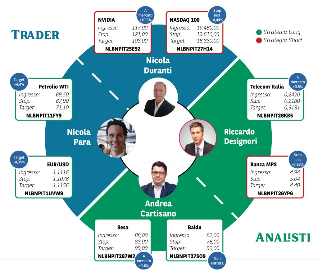 Borsa in Diretta è la newsletter giornaliera di BNP Paribas. Ogni lunedì non perderti l'appuntamento di Weekly FTSE MIB, pillola video in cui si analizza il principale indice di Borsa Italiana e si forniscono strategie operative per la settimana entrante. Inoltre, quotidianamente riceverai informazioni riguardanti notizie finanziarie e appuntamenti macroeconomici della giornata, analisi tecnica dei principali indici azionari FTSE MIB, DAX e S&P500 e aggiornamenti delle Trade Idea fatte dai migliori trader italiani durante House of Trading.