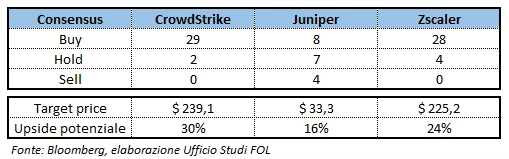Ecco che le opportunità sono molteplici e tra i principali vantaggi dell’AI abbiamo una possibile riduzione dei costi e un potenziale miglioramento della produttività. L’Intelligenza Artificiale può essere quindi un comparto molto interessante nel lungo termine e tra le società che vanno in questa direzione possiamo citare le americane Crowdstrike, Juniper e Zscaler.